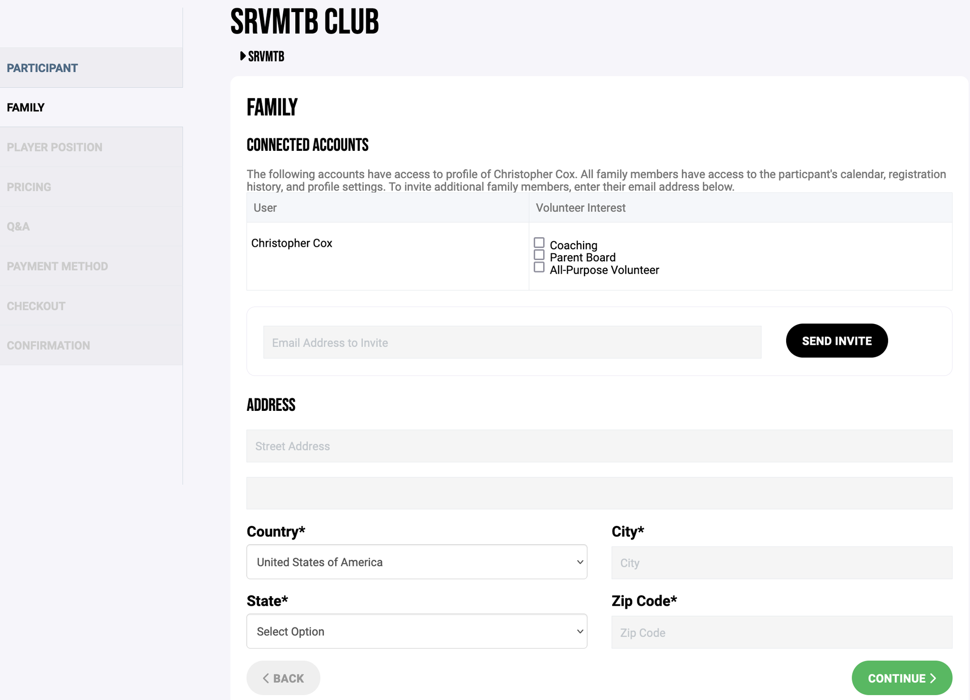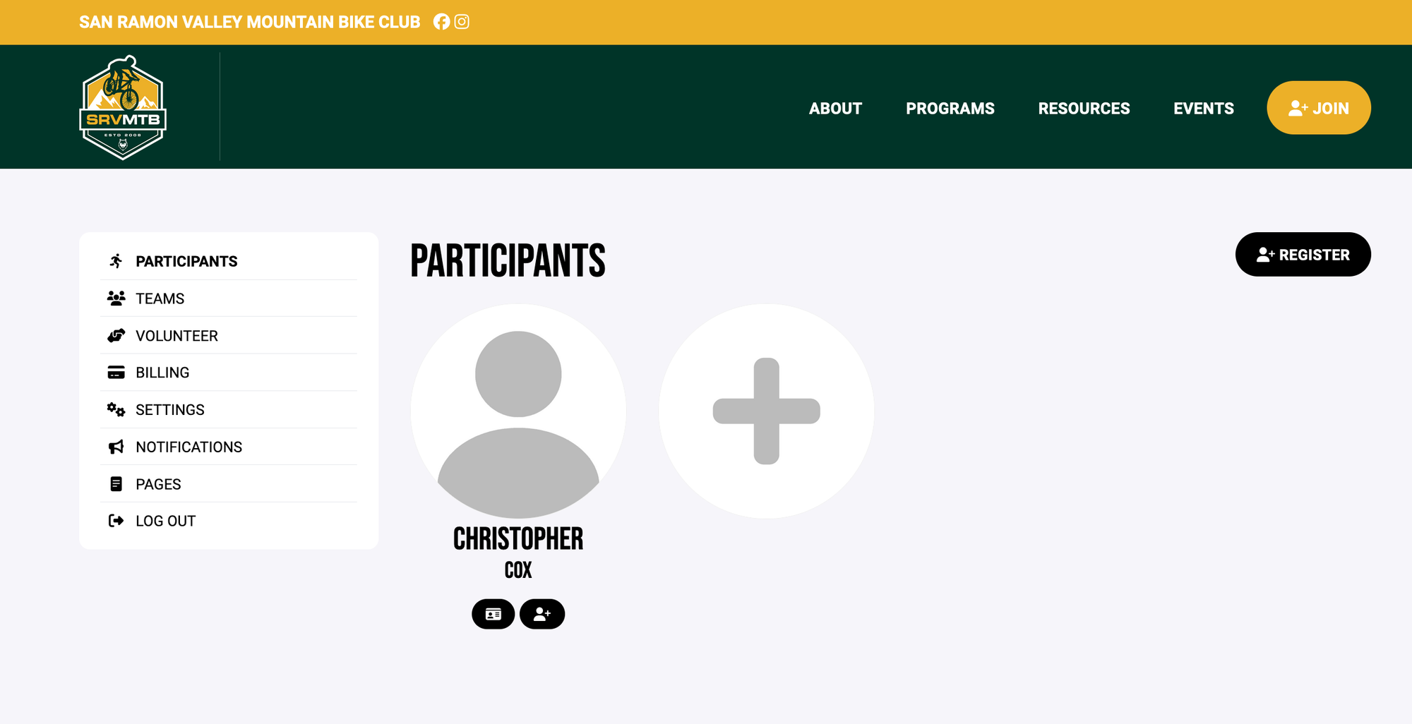After completing your account setup, you’ll be prompted to add a Participant/Player.